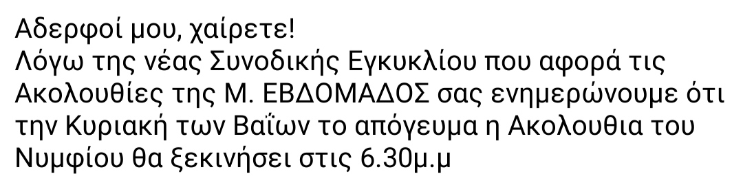 Ανακοίνωση για την ακολουθία του Νυμφίου.